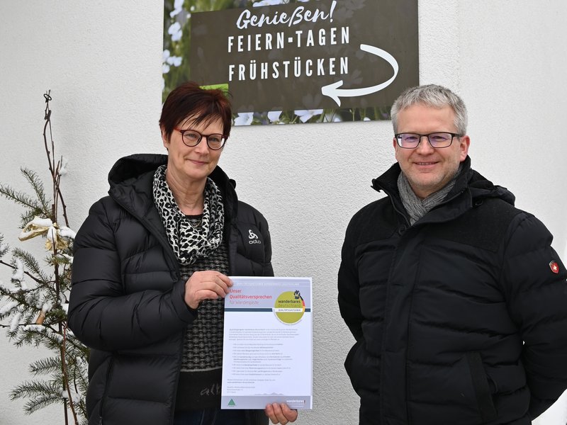 Seit 2005 setzt der Deutsche Wanderverband bundesweite Qualitätsstandards für wanderfreundliche Unterkünfte. Auch in Bad Urach sind einige Betriebe mit dem Prädikat “Qualitätsgastgeber Wanderbares Deutschland" ausgezeichnet und somit speziell auf die Bedürfnisse von Wanderern eingestellt. So auch das Gästehaus 26/2, welches Tourismuschef Torsten Clement ein weiteres Mal als Spezialist für die Zielgruppe Wanderer auszeichnen konnte. Bereits vor drei Jahren hatte die Ferienunterkunft das Zertifikat zum ersten Mal erhalten.