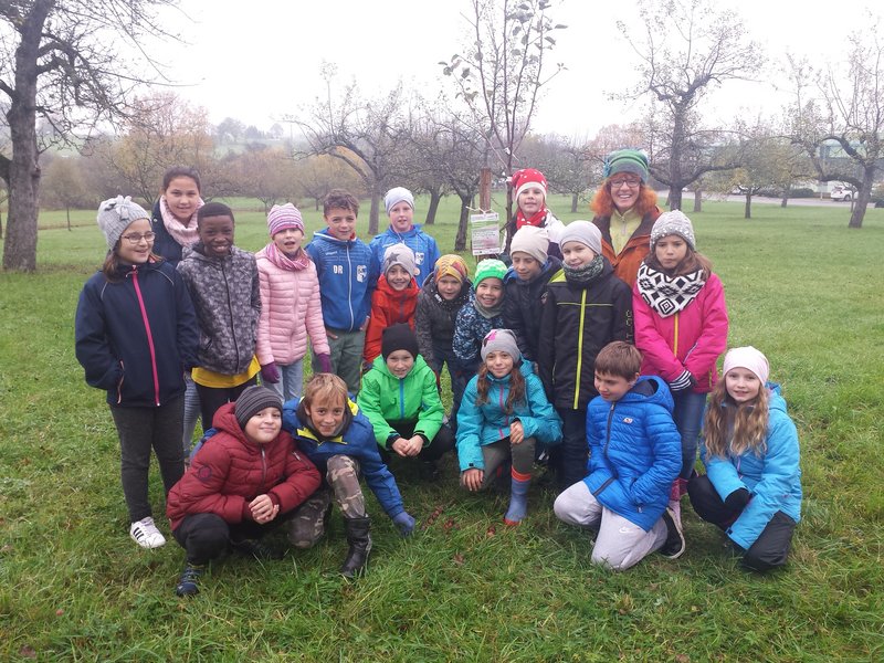 Über die Frage was ein „Brettacher“ und ein „Schöner von Boskoop“ sind, können die Viertklässler der Gutenberg-Schule in Riederich nur überlegen lächeln. Ein Jahr lang haben die Schüler und Schülerinnen der Klassen 4a und 4b nun zusammen mit Ihrer Streuobst-Pädagogin Marion Scherl eine Streuobstwiese gepflegt und in ihrem „Klassenzimmer im Grünen“ sehr viel Neues über unsere schwäbische Kulturlandschaft gelernt.
