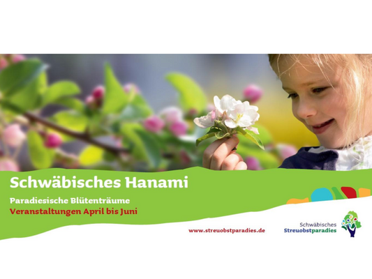 Die ersten Schneeglöckchen zeigen sich in den Streuobstwiesen. Auch im „Schwäbischen Streuobstparadies“ wird dem Frühjahr entgegengefiebert. In der größten zusammenhängenden Streuobstlandschaft Europas finden ab April unter dem Motto „Schwäbisches Hanami“ (japanisch = Blüten betrachten) wieder zahlreiche Veranstaltungen zur Obstblüte statt. Die ortsansässigen Vereine, Museen, Betriebe und Kommunen der sechs paradiesischen Landkreise haben vielfältige Wanderungen, Blütenfeste, Kochkurse, Kinderaktivitäten und andere erlebnisreiche Angebote zusammengetragen, um diese zauberhafte Jahreszeit zu erleben.