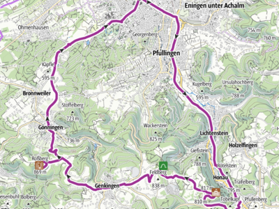 Mit dem Fahrrad können wir auch wahre Highlights unseres Landkreises bereisen, beispielsweise auf der Radtour R17: Auf einer abwechslungs- und steigungsreichen Tour fahren wir entlang des Echaztals zum Schloss Lichtenstein und zur Nebelhöhle sowie auf den Roßberg. Startpunkt ist das Tübinger Tor in Reutlingen, ca. 3 Radfahrminuten vom Hauptbahnhof Reutlingen entfernt. Zunächst fahren wir zum Südbahnhof und von dort auf der alten Bahntrasse bis nach Lichtenstein. Dann geht es den Bahntrassenradweg der Zahnradbahn hoch und am Skilift Lichtenstein - Traifelberg vorbei auf das Schloss Lichtenstein zu. Nach dem Anstieg hoch zum Schloss können wir das Rad rollen lassen bis zur Kalkofenhütte und fahren dann weiter zur Nebelhöhle. Danach rollt das Rad bis nach Genkingen. Anschließend fahren wir am Wald entlang und haben Sicht auf die stufige Alblandschaft und den Roßberg. Nun kann ein Abstecher hoch zum Roßbergturm eingebaut werden, der einige Höhenmeter mit sich bringt. Die tolle Aussicht belohnt uns jedoch. Vorsichtig geht’s anschließend den Wald bergab in Richtung Gönningen. Am Ortsende wechseln wir auf einen Radweg, der uns wieder zurück nach Reutlingen führt.