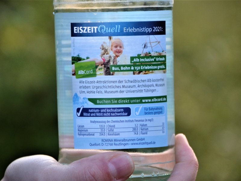 Die AlbCard goes EiszeitQuell – Erlebnistipp auf den Glasflaschen der Romina Mineralbrunnen GmbH