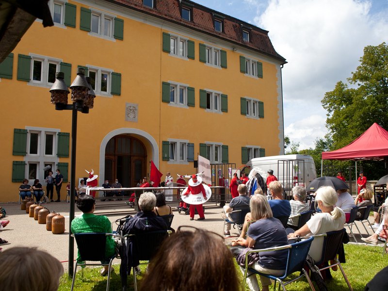 Um die nötigen Abstände zwischen den Zuschauer*innen während der Corona-Pandemie einzuhalten, wird auf dem Marktplatz eine Theatersituation aufgebaut, sodass Sitzplätze in einem abgesperrten Bereich vor der Bühnenfläche vorhanden sind. Den Aufführungen kann aber auch im Stehen gefolgt werden. Der Eintritt ist frei, jederzeit kann man noch dazu stoßen und wieder weiterziehen.