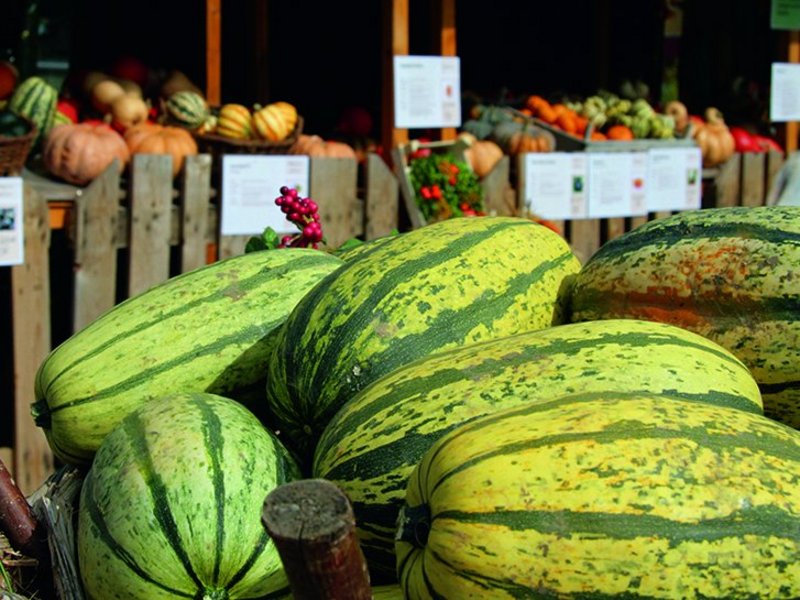 Bis zum 09. Oktober laden der Marktplatz im Kräuter- und Erlebnisgarten sowie der dazugehörige Kräuter Markt zu einer Entdeckungsreise durch die saisonale Vielfalt klassischer Ernteprodukte ein. Hokkaido, Butternut & Co sowie zahlreiche weitere Speise- und Zierkürbisse werden neben saisonalem Obst-, Gemüse- und Kräutersorten angeboten. Ebenso herbstliche Dekorationsideen für den Innen- und Außenbereich, welche inspirieren und aufgrund ihrer liebevollen Umsetzung begeistern.