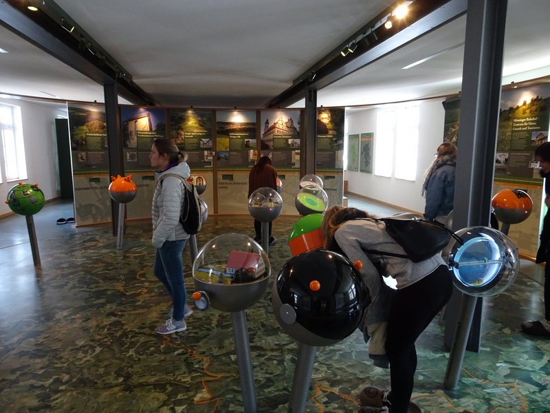 Der Geschäftsführer der Tourismusgemeinschaft Mythos Schwäbische Alb Wolfgang Schütz, begleitete die interessierte Gruppe und organisierte Führungen in fünf verschiedenen, regionalen Betrieben. Zunächst durften die Studenten in Römerstein die Bäckerei BeckaBeck kennen lernen. Während die Studenten frische, regionale Backwaren genießen konnten, berichtete der Geschäftsführer Heiner Beck über die Visionen und Motivationen sowie die Vernetzung lokaler und regionaler Akteure seiner Bäckerei. Im Anschluss ging es ins Biosphärenzentrum nach Münsingen. Hier wurden die Aufgaben, Tätigkeiten und die Vernetzung des Biosphärengebiets erklärt. Danach konnten die Tourismusstudenten die 450 qm große Ausstellung im Infozentrum selbständig erkunden. Kulinarisch ging es im Landgasthof Hirsch und Metzgerei Failenschmid in St. Johann-Gächingen weiter. Während des Vortrages von Ludwig Failenschmid, ergänzt vom Alb-Büffel Züchter Willi Wolf, wurde die Tradition des Familienbetriebes, sowie die Naturverbundenheit, die Leidenschaft und die Kooperation mit anderen regionalen Akteuren hervorgehoben. Deutlich wurde die Qualität, als die Studenten die leckeren, hausgemachten Spezialitäten, unter anderem auch vom Alb-Büffel reichlich probieren durften. Nach der Verköstigung ging es ein paar hundert Meter weiter zur Naturmode Manufaktur Flomax. Auch hier wurde das Exkursionsthema regionale Produkte und die regionale Vernetzung sehr deutlich. Während einer kleinen Betriebsführung erklärte Geschäftsführerin Veronika Kraiser, dass die Textilien regional, nachhaltig und ökologisch hergestellt werden. Als Letztes ging es nach Dettingen zur Brennerei Brennscheuer Straßer. Bei einem Begrüßungslikör sprach Inhaber Manuel Straßer nicht nur über die Schaubrennerei sondern auch über die Arbeit mit der Natur und die Tradition. Der Anbau, die Herstellung und Vermarktung der heimischen Früchte zeigte nochmals die bedeutende Rolle der Regionalität