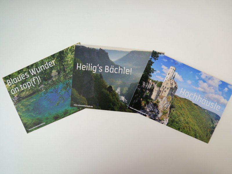 Neben der Verteilung in den oben genannten Städten und Regionen sind die drei Postkarten ab dem 22. Juni auch online auf www.schwaebischealb.de kostenlos bestellbar.