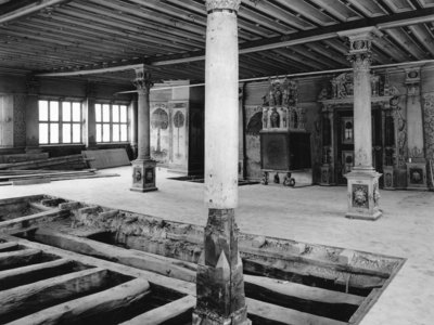 Der Palmensaal war dann auch während der Feierlichkeiten der Speisesaal für die hohen adligen Herren. Die adligen Damen speisten hingegen im Stockwerk darüber. Welche Veränderungen die dortigen Räumlichkeiten anlässlich der Hochzeit erfahren hatten, war bislang ungewiss. Die neuesten Untersuchungen konnten nun aber auch hier große Veränderungen nachweisen, die dazu dienten der gräflichen Hochzeit einen fürstlichen Rahmen zu geben.