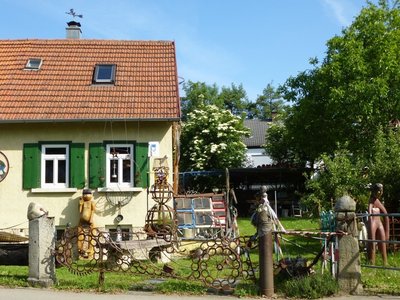 Das Schaffwerk ist ein altes Haus am Ortsrand von Pfullingen. Der Garten ist mit großen, auffälligen Figuren bestückt und mit geschweißten Metallgebilden umrandet. Das Haus steckt voller alter Gebrauchsgegenstände, Kunstobjekte und eigensinniger Erfindungen. Der Rundgang führt von der Transmission über den Mittelpunkt der Erde und endet an der Drecklach im Garten.