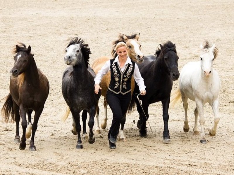 Mit „Freiheit auf Ehrenwort“ ist die einzigartige Freiheitsdressur von Kerstin Brein umschrieben. Seit 2007 tourt die 34 Jahre alte Österreicherin mit ihren fünf energiegeladenen Welshponys quer durch Europa – und begeistert das Publikum. Action, Emotion, Humor und Faszination stehen für diese Shownummer.
