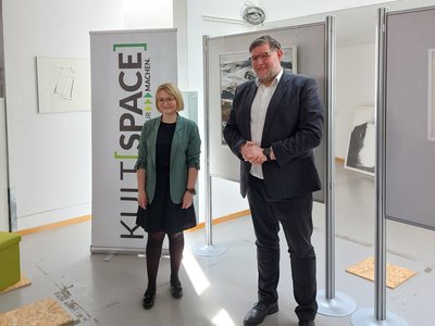 Der Kultspace Münsingen hat seinen Standort im Herzen Münsingens in der ehemaligen Postfiliale Uracher Straße 5. Auf einer Fläche von 205 Quadratmetern bietet er eine Alternative zur einsamen Arbeit im heimischen Kunstatelier. Auch Kulturveranstaltungen, Ausstellungen, Workshops oder Pop-up-Verkäufe sind möglich. Bei der Belegung des Kultspace Münsingen gibt es nur noch wenige Lücken, weshalb neue Bewerbungen momentan noch möglich sind. Das unbürokratische Bewerbungsformular und aktuelle Programm- und Veranstaltungshinweise gibt es unter www.kultur-machen.de/kultspace.