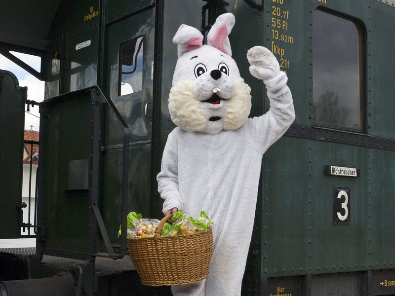 Noch vor dem eigentlichen Saisonbeginn des Freizeitnetzes Schwäbische Alb weckt die SAB ihre über 115 Jahre alte Lok und die dazu passenden 100-jährigen Wagen aus dem Winterschlaf. Entlang der jungen Lauter geht es an diesem Tag über die stille Haid, durch das romantische Hasental und ein kurzes Stück an der Seckach vorbei. Wie immer, wenn der Osterhase mit der Alb-Bahn fährt, hat er für alle kleinen Fahrgäste eine süße Überraschung dabei.