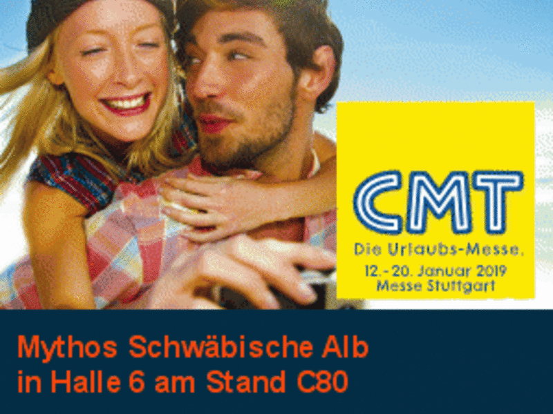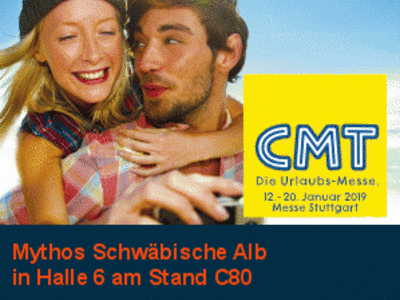 Am Samstag um 09.00 Uhr fällt der Startschuss für die größte Publikumsmesse für Tourismus und Caravaning, die CMT, auf der Landesmesse Stuttgart. 9 Tage lang ist die Tourismusgemeinschaft Mythos Schwäbische Alb mit einer Fülle von Informationen und Angeboten am Gemeinschaftsstand der Schwäbischen Alb in Halle 6 am Stand 6C80 vertreten.
