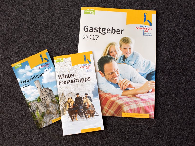 Auch im Winter bietet die Alb jede Menge Freizeitvergnügen. Zusammengefasst in der Broschüre Winter-Freizeittipps finden Schneefans Hinweise zu geräumten Winterwanderwegen, Langlaufen, Rodeln, Pferdeschlittenfahrten oder Schneeschuhtouren. Wer Gäste unterbringen möchte, oder einen der vielen kulinarischen Gastgeber der Mittleren Schwäbischen Alb sucht wird im umfangreichen Gastgeberverzeichnis 2017 fündig. Hotels, Gasthöfe, Ferienwohnungen und Campingplätze, geordnet nach Orten und Kategorien geben einen guten Überblick über das breit gefächerte Angebot in der Region. Zum Thema Wandern und Radfahren gibt es die bewährten Klassiker: Die handlichen Broschüren Wandern inklusive der prädikatisierten Wege und Radfahren enthalten alle wichtigen Informationen dazu.