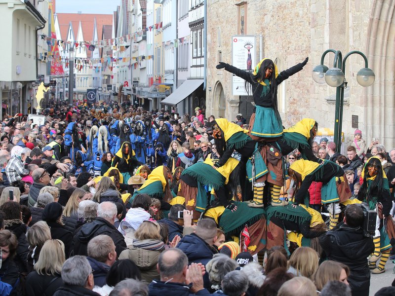 Am „Schmotziga“ Donnerstag (Weiberfasnet 20.02.20) schwappt die närrische Welle ins Dorf: völlig legal werden Rathäuser gestürmt und Narrengerichte gehalten, bis zum „Rußigen Freitag“ Schüler und Kindergärten befreit. Kleinere Versehen und Missgeschicke landen derb-schwäbisch in der Bütt. Die lärmenden Umzüge der Straßenfasnet sind ein farbenprächtiges Spektakel unterm eisigen Flockenhimmel. Bleibt die Verbrennung, das Vergraben der Fasnet, das jämmerliche Geldbeutelauswaschen und Wehklagen kurz vor Beginn der Fastenzeit am Aschermittwoch (26.02.20).
