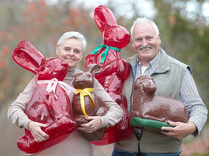 Hasen und Lämmer in besonderer Form zu Gast in Sonnenbühl – rund 80 große und kleine Motivformen veranschaulichen eindrücklich, wie die beliebten Süßigkeiten aus Schokolade und Zucker einst von Hand hergestellt wurden. Die Exponate für das Gießen der Leckereien stellen Jürgen und Hannelore Pintscher aus Esslingen zur Verfügung. Die beiden Endsechziger sind dem Museum im Ortsteil Erpfingen schon lange sehr verbunden und als leidenschaftliche Sammler für alles, was mit dem Osterbrauch zu tun hat, besitzen sie auch eine beachtliche Zahl unterschiedlicher Gussformen. Darunter einige Schokohasenformen aus Weißblech, die im frühen 20. Jahrhundert hergestellt wurden und aus der Blechwarenfabrik Anton Reiche in Dresden den Weg ins Schwabenland gefunden haben. Neben den vielgestaltigen Ausführungen ist das Ehepaar, das seit 30 Jahren seinen Bestand ständig vergrößert, besonders von der filigranen Handarbeit begeistert. „Sogar feinste Härchen lassen sich auf den Hasen erkennen“, erklärt Jürgen Pintscher. Die älteste Form, die ausgestellt wird, ist von 1880, die jüngste von 1940. Kurz danach wurden die Weißblech- und Druckgussformen von Alternativen aus Kunststoff abgelöst, wie sie noch heute genutzt werden. Ebenfalls beliebt als Motiv ist das klassische Osterlamm. Hannelore Pintscher ist mit der Herstellung des Biskuitgebäcks bestens vertraut. Allerdings ist die Weißblechform, die sie verwendet nicht topmodern, sondern rund 100 Jahre alt ist.