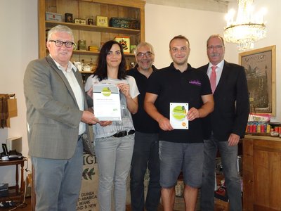 Der Gomadinger Bürgermeister Klemens Betz, nahm gemeinsam mit Wolfgang Schütz, dem Geschäftsführer der Tourismusgemeinschaft am 17. Juli die Übergabe der Urkunde in den im letzten Jahr erweiterten Räumen des Lagerhauses vor.