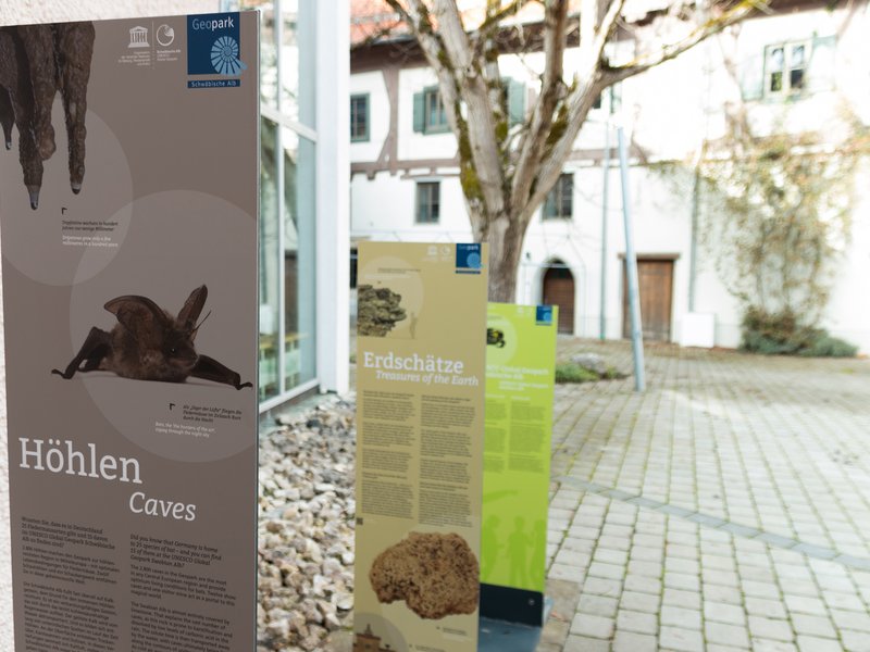 Schwäbische Alb / 23. April 2021 - Das Infostellen-Netzwerk des Geoparks Schwäbische Alb umfasst 28 Orte darunter Schauhöhlen, Museen, Naturschutzzentren und Bildungseinrichtungen. Sie alle bekommen eine Ausstattung im neuen Corporate Design des Geoparks. Diese visualisiert die vier Kernthemen Höhlen, Fossilien, Eiszeit, Erdschätze und spiegelt das weltweite UNESCO-Geopark-Netzwerk.