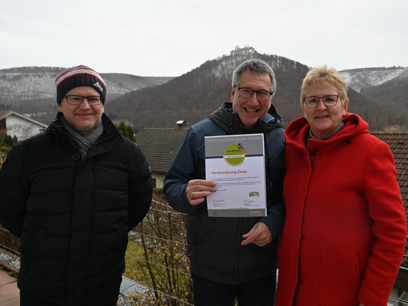 Ein besonderes Wandererlebnis bieten nicht nur die Premiumwanderwege Grafensteige, sondern auch die in Bad Urach vorhandenen „Qualitätsgastgeber Wanderbares Deutschland“. Nun konnte Tourismuschef Torsten Clement das Haus Eisele ein weiteres Mal als Spezialist für die Zielgruppe Wanderer auszeichnen. Vor drei Jahren hatte die Ferienunterkunft das Zertifikat zum ersten Mal erhalten.