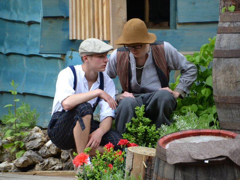 So sehen die Schauspieler des Kinderstücks Tom Sawyer und Huckleberry Finn dem 20. August entgehen. Um 14 Uhr 30 hebt sich das letzte Mal der Vorhang und die beiden Akteure stürzen sich wieder in das Abenteuer auf der Bühne.