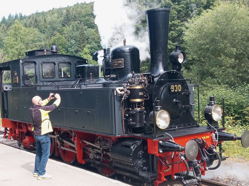 Zunächst der Blick zurück zu den Wurzeln: Mit der frisch hauptuntersuchten Dampflok des SAB-Vereins, der württembergischen „T3 Nr. 930“ aus dem Jahre 1905 geht es unter Volldampf nach Marbach und wieder zurück. Das Zugpersonal in seinen historischen Uniformen ist perfekt eingespielt, so dass die Fahrt zu einem besonderen Erlebnis wird. Man fühlt sich wahrlich in längst vergessen geglaubte Eisenbahnzeiten zurückversetzt. Zusammen mit den beiden passenden württembergischen Wagen aus dem Jahr 1904 stellt das Zügle eine „eisenbahnhistorische Ausnahmeerscheinung“ dar, die es kein zweites Mal gibt, wie Winfried Hermann feststellt.