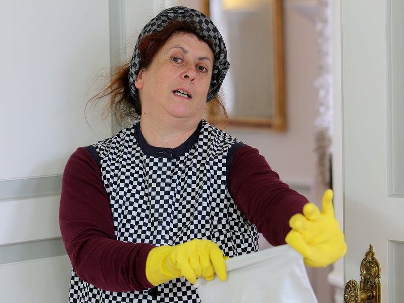 Schloss Urach bietet diese Möglichkeit. Begleitet von Rosi, der resoluten Putzfrau, bewaffnet mit Staubwedel oder Staubtuch können die Schlossbesucher das tun.