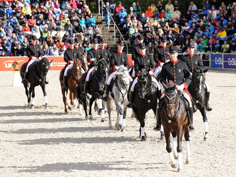 Pferdestarken Schwung bringen die zehn Zweispänner in einer Galopp-Quadrille mit ihren baden-württembergischen Fahrern. Die jüngsten der Marbacher Pferde, des Stutenmeisters ganzer Stolz, verzaubern in ihrer spielerischen Art besonders die kleinen Besucher auf den Rängen. Geballte Power bringen die 24 Schwergewichte der Kaltblutrassen Freiberger, Schwarzwälder und Rheinisch-Deutsches Kaltblut in die Arena. Die 24 Landbeschäler werden in einem Gemeinschaftsprojekt von Auszubildenden aus dem Schweizerischen Nationalgestüt Avenches, dem Nordrhein-Westfälischen Landgestüt Warendorf und dem Haupt- und Landgestüt Marbach vorgestellt. Nur wenige Tage bleiben den Auszubildenden, um die anspruchsvolle Choreografie zusammen einzustudieren. Heiß her geht es im wahrsten Sinne des Wortes bei der „Feuerprobe“. Bereiter und Azubis wagen mit ihren Pferden den Sprung durch das Feuer. Um Geschwindigkeit und Geschicklichkeit geht es beim Speedtrail and Drive, wenn Reiter- und Fahrer-Teams in kniffligen Parcours gegeneinander antreten. Unsere spanischen Gäste bringen dazu die aus der traditionellen Arbeitsreitweise der Rinderhirten entstandene „Working Equitation“ ins Spiel. Zu Ehren des Gastlands Spanien präsentieren die Marbacher „Gestüter“ die Quadrille gemeinsam mit den Reitern aus dem ehemaligen Marstall der spanischen Könige in Córdoba.