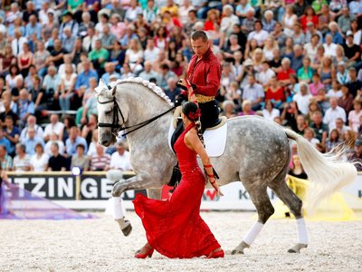 Der königliche Marstall von Córdoba ist die Wiege der Zucht eines der besten und berühmtesten Pferde, das die Geschichte hervorgebracht hat: Das reinrassige Spanische Pferd (P.R.E.), das auch unter dem Oberbegriff „Andalusier“ bekannt ist. Viele Facetten der spanischen Reiterei und der dort beheimateten Pferderassen erfahren die Besucher im Programm. Beim Sevillanas-Tanz wird die Grazie einer Flamenco-Tänzerin mit der Eleganz eines Pferdes vereint. Die äußerst aufmerksamen und gut trainierten Pferde begleiten, zusammen mit ihren Reitern, die Tänzerin zum Beat des Sevillanas-Tanzes. Die Garrocha ist ein beliebtes Element bei Pferdeshows geworden, das Einblicke in die Arbeit der Vaqueros auf den andalusischen Weideflächen gibt.