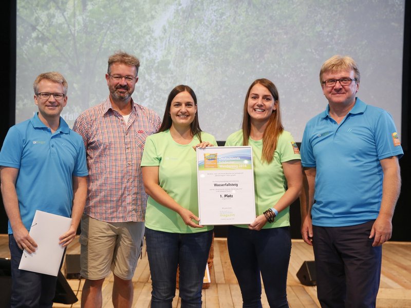 Urkundenübergabe auf der Messe TourNatur in Düsseldorf - Wasserfallsteig Bad Urach ist der Sieger bei der Wahl "Deutschlands Schönster Wanderweg 2016"