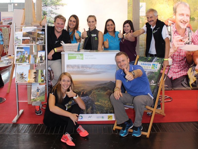 Den Sieg und die Urkundenübergabe konnte man in Düsseldorf mit zahlreichen KollegInnen von der Schwäbischen Alb feiern, gab es doch in diesem Jahr zum ersten Mal einen gemeinsamen Stand der Wanderwegeexperten aus der Region. Gemeinsam mit der Geschäftsstelle des Tourismusverbands Schwäbische Alb (SAT), dem Landkreis Göppingen, der Erlebnisregion Schwäbischer Albtrauf sowie dem Donaubergland präsentierte man sich dem nordrhein-westfälischen Publikum und konnte so der Wanderdestination Schwäbische Alb auf der Messe eine noch größere Aufmerksamkeit bescheren.