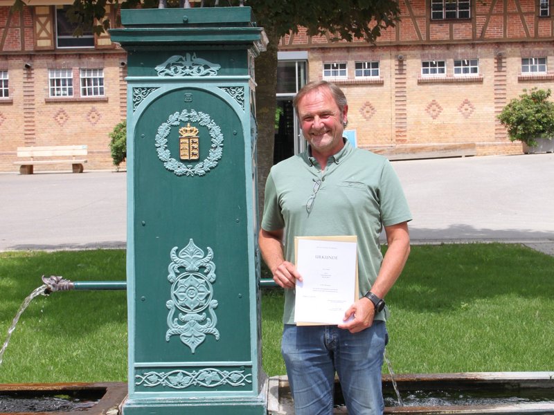 In seiner anstehenden Pension macht er sich nun zusammen mit seiner Frau und ihrem jungen Hund auf die Suche nach einem geeigneten Alterssitz im Gomadinger Umkreis. „Hauptsattelmeister Michael Maier gebührt Dank und Anerkennung für die 46 Jahre Dienstzeit im Haupt- und Landgestüt Marbach. Wir wünschen ihm alles Gute für den neuen Lebensabschnitt“, sagte Landoberstallmeisterin Dr. Astrid von Velsen-Zerweck bei der Übergabe der Urkunde.