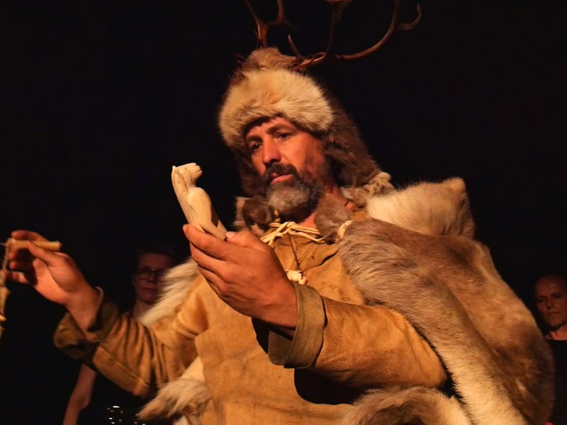 Christoph Haas (Schamanentrommel, Musikbogen, Muschelhorn, Gesang, Komposition, Regie), Gabriele Dalferth (eiszeitliche Flöten), BANDA MARACATÙ (Perkussion und Gesang)