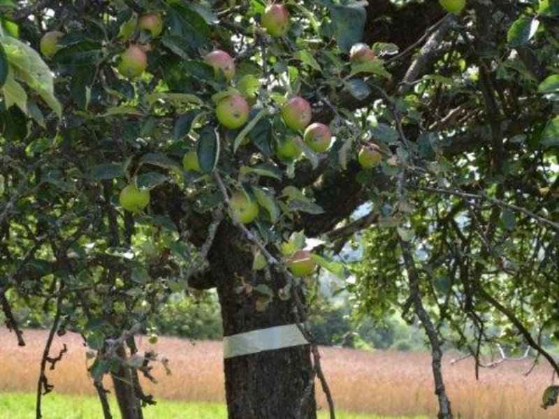 Im i-Punkt, Rathaus IV (Griesstraße 6), können Obstbauminhaber ab sofort zu den üblichen Öffnungszeiten ein solches weißes Markierungsband, wie auf dem Bild dargestellt, abholen und ihre Obstbäume in Pfullingen kennzeichnen.