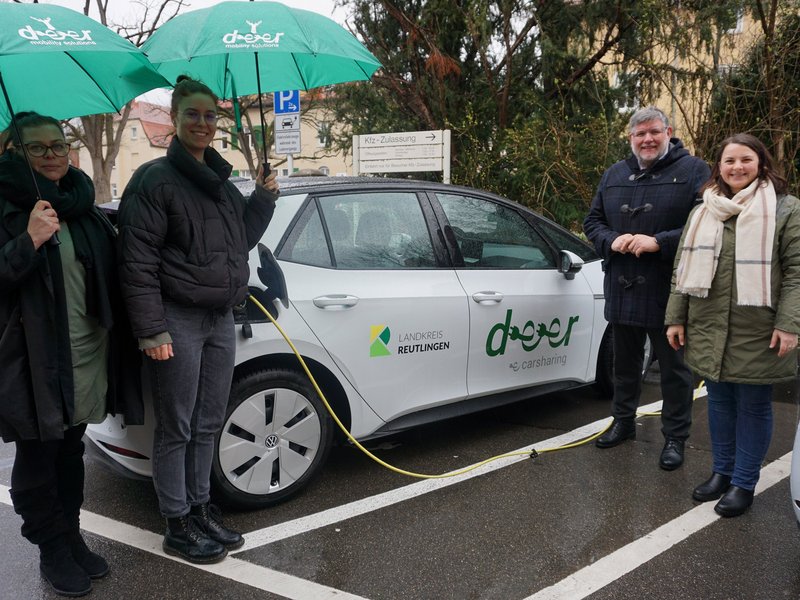 Der Landkreis Reutlingen setzt sich besonders für nachhaltige Mobilitätsangebote im ländlichen Raum ein und brachte daher 2022 im Rahmen des Projektes „LandMobil“ die ersten beiden E-Carsharing-Stationen in Münsingen und Engstingen auf den Weg. Inzwischen gibt es mit der Eröffnung gestern zehn Standorte im Landkreis Reutlingen. Weitere werden in Kürze in Dettingen, Lichtenstein und Pfronstetten folgen.